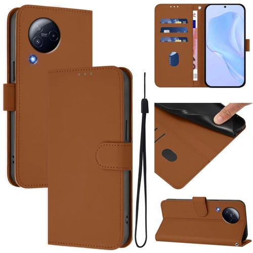 Funda de Piel Sintética con Cordón para Xiaomi Civi 3 5G (Marrón)