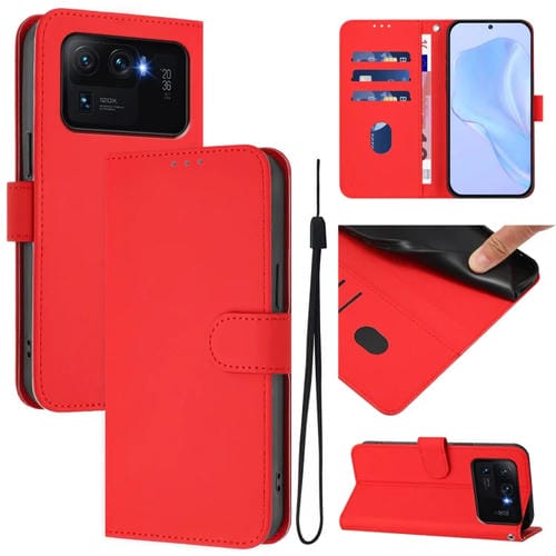 Funda de Piel Sintética con Cordón para Xiaomi Mi 11 Ultra (Color Sólido) (Rojo)