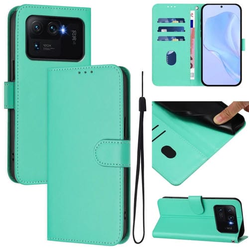 Funda de Piel Sintética con Cordón para Xiaomi Mi 11 Ultra Skin Feel de Color Liso (Verde)
