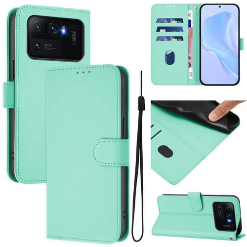 Funda de Piel Sintética con Cordón para Xiaomi Mi 11 Ultra Skin Feel de Color Liso (Verde Menta)