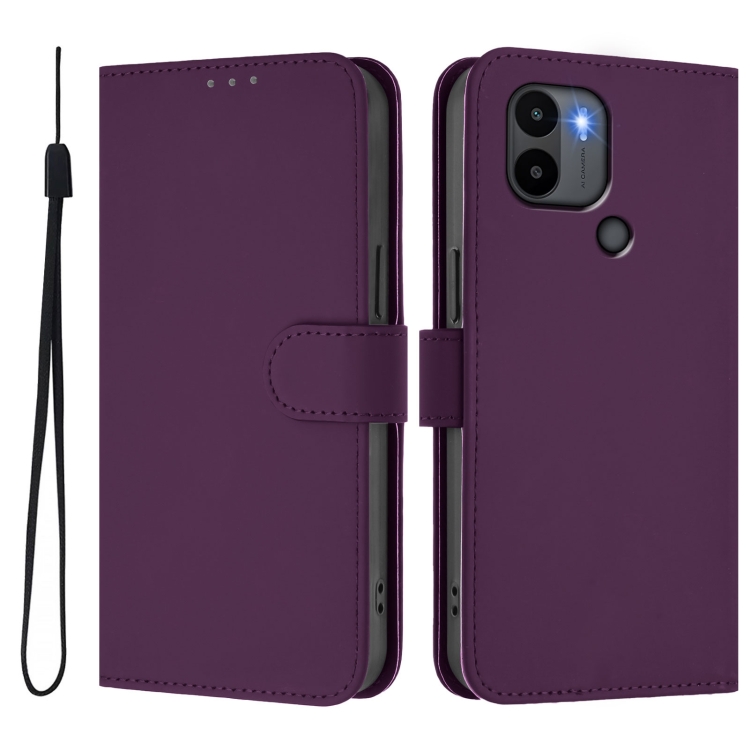 Funda de Piel Sintética con Cordón para Xiaomi Poco C50 4G/C51 (Color Sólido) (Violeta)