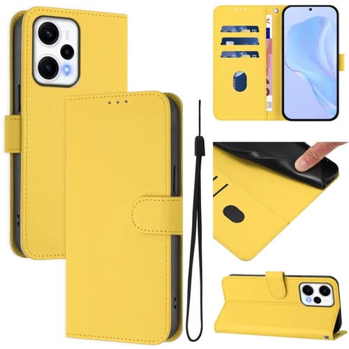 Funda de Piel Sintética con Cordón para Xiaomi Poco F5 (Amarillo Limón)
