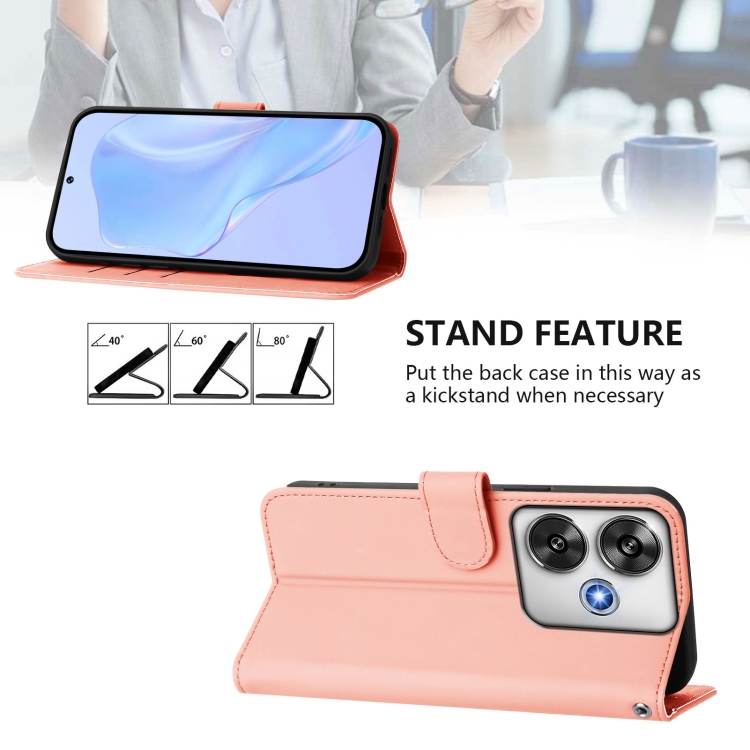 Funda de Piel Sintética con Cordón para Xiaomi Poco F6 5G (Rosa)