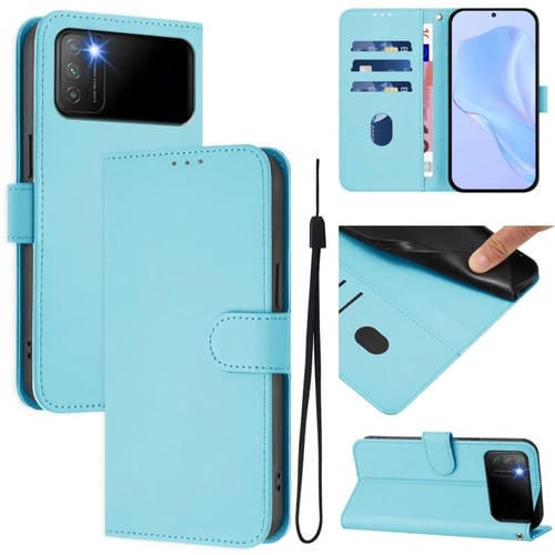 Funda de Piel Sintética con Cordón para Xiaomi Poco M3 (Azul Cielo)