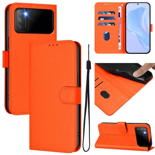 Funda de Piel Sintética con Cordón para Xiaomi Poco M3 (Naranja)