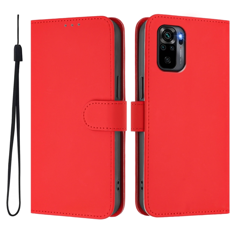 Funda de Piel Sintética con Cordón para Xiaomi Poco M5S (Color Sólido) (Rojo)