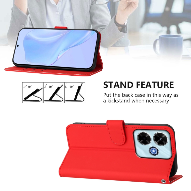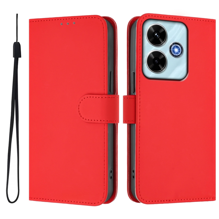 Funda de Piel Sintética con Cordón para Xiaomi Poco M6 4G (Color Sólido) (Rojo)