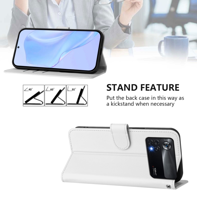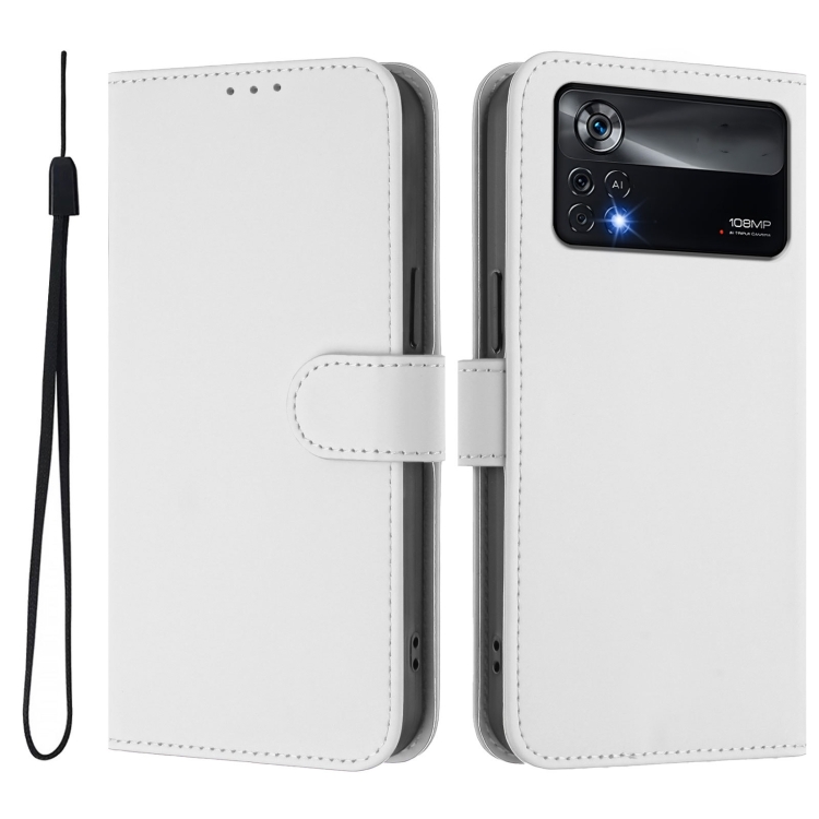 Funda de Piel Sintética con Cordón para Xiaomi Poco X4 Pro 5G (Color Blanco)