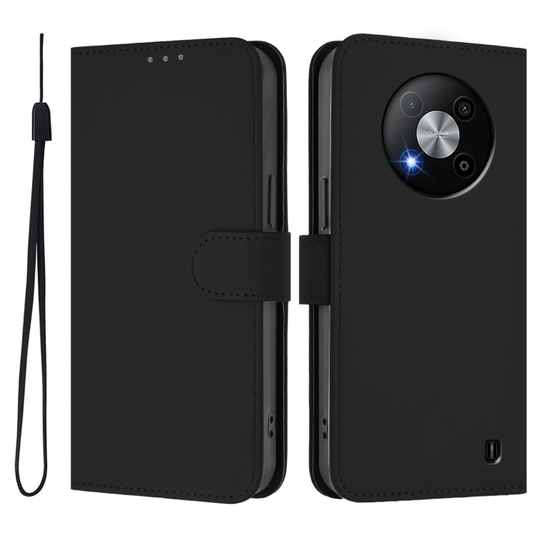 Funda de Piel Sintética con Cordón para ZTE Blade A73 5G con Tacto de Piel (Negro)