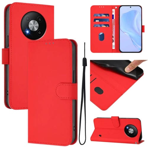 Funda de Piel Sintética con Cordón para ZTE Blade A73 5G (Rojo)