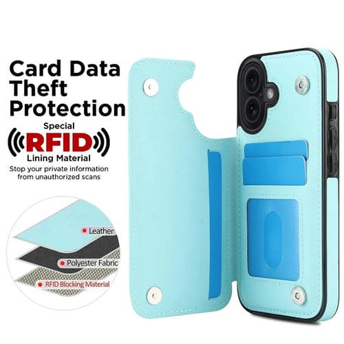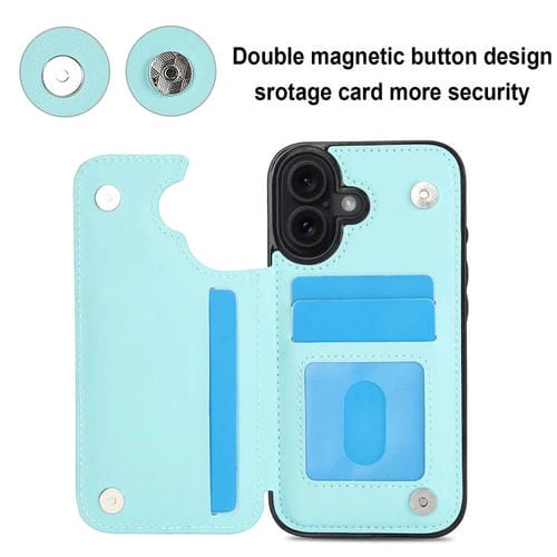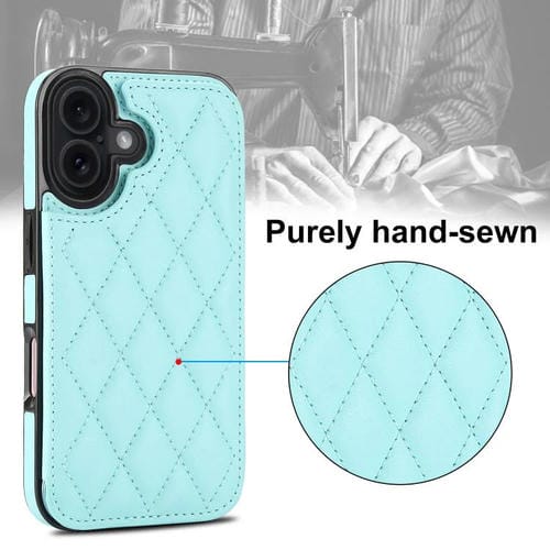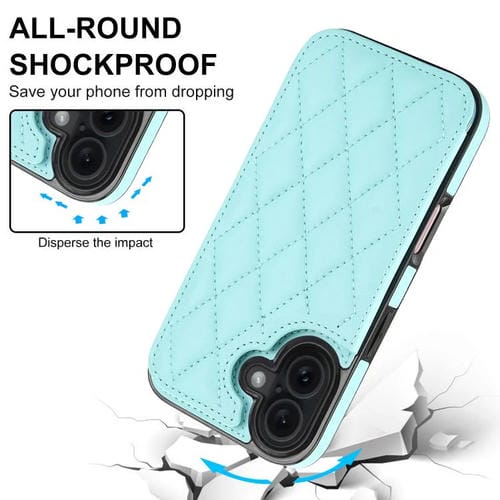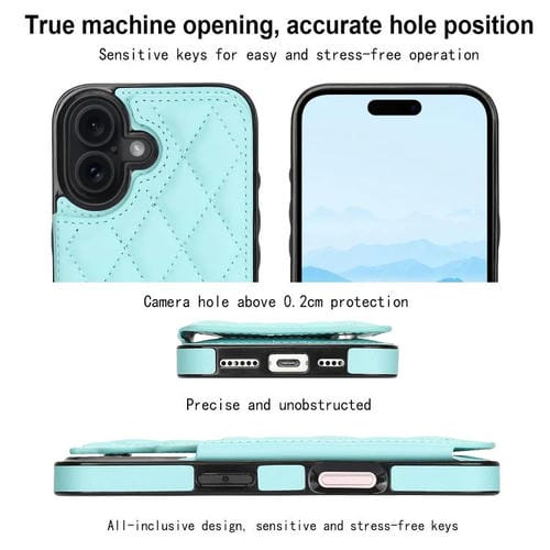 Funda de piel sintética con doble hebilla y diseño rómbico para iPhone 17 (azul)