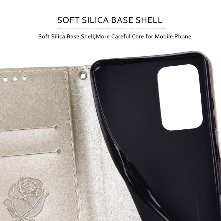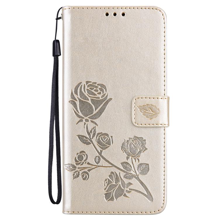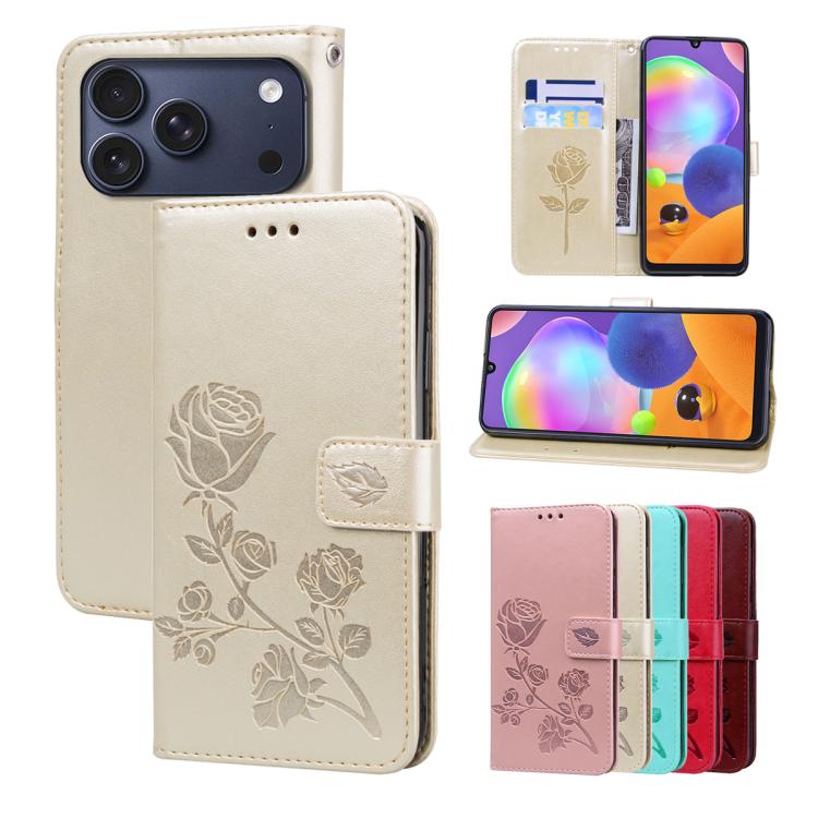 Funda de piel sintética con tapa abatible y relieve rosa para iPhone 17 Pro (dorada)