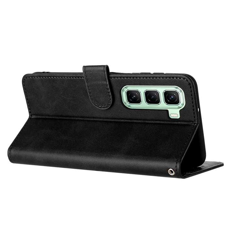 Funda Piel Sintética con Tapa para Infinix Hot 50 5G (Negra) Textura Becerro
