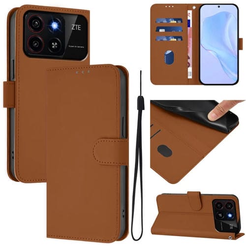 Funda piel sintética con cordón para ZTE Blade A35/A55 (Marrón)