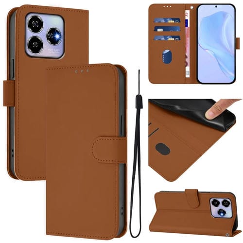 Funda de Piel Sintética con Cordón para ZTE Blade V60 4G y Axon 60 4G (Marrón)