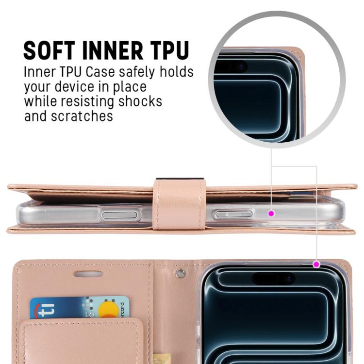 Funda de piel texturizada Crazy Horse GOOSPERY RICH DIARY para iPhone 17 Pro (Oro rosa)