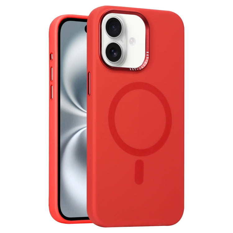 Funda de Silicona Líquida con Marco de Lente de Metal para iPhone 16 Magsafe (Roja)