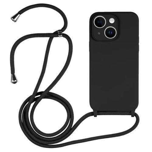 Funda de Silicona Líquida para iPhone 14 Crossbody Lanyard (Negro)