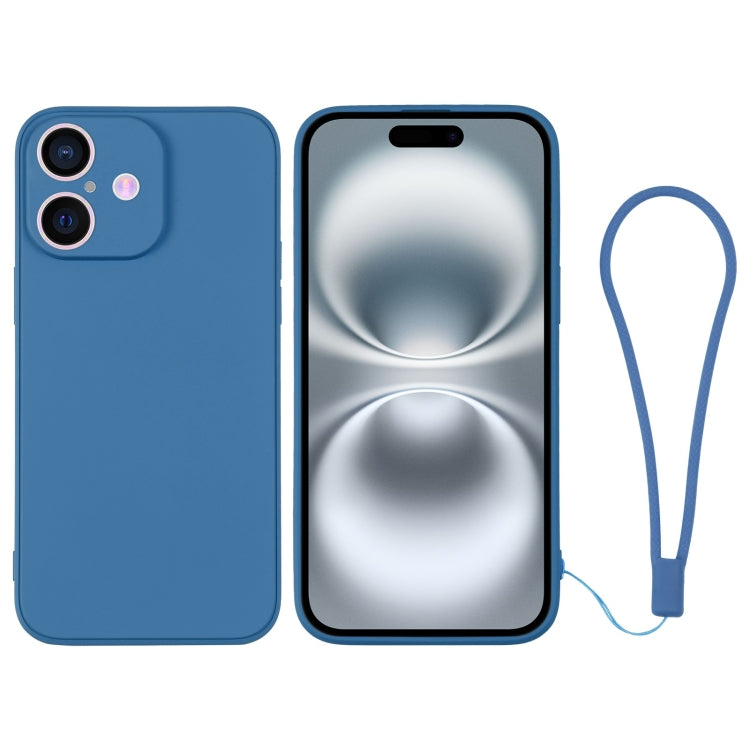Funda de Silicona para iPhone 16 con Correa para la Muñeca (Azul)
