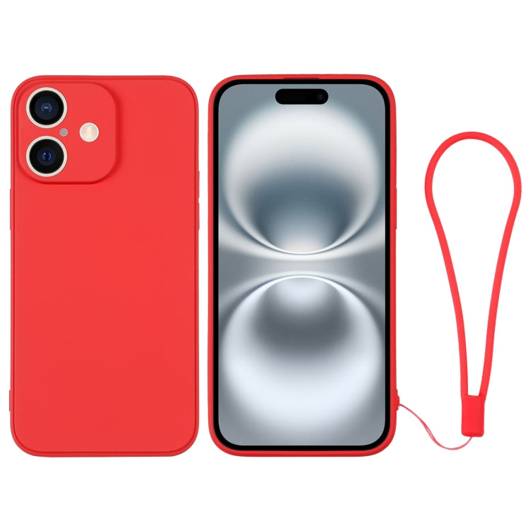 Funda de Silicona para iPhone 16 con Correa para la Muñeca (Roja)