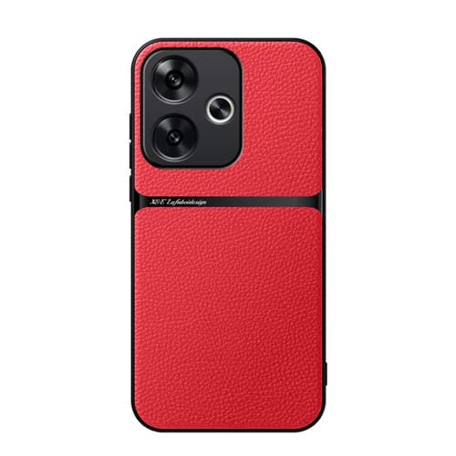 Funda de Teléfono a Prueba de Golpes con Cobertura Total Magnética de Cuero Litchi para Redmi Turbo 3 / Xiaomi Poco F6 (Rojo)