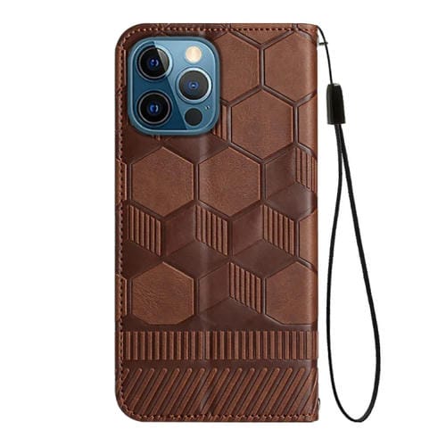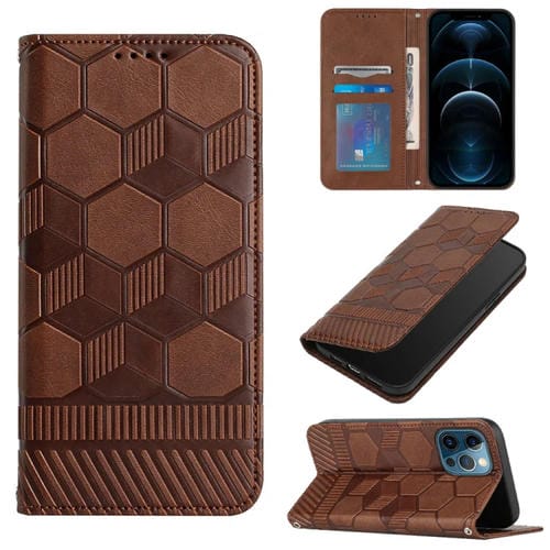 Funda de Teléfono iPhone 12 Pro Max Cuero Magnético Textura Fútbol (Marrón)