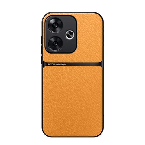 Funda de Teléfono con Tapa Magnética de Cuero Litchi para Redmi Turbo 3/Xiaomi Poco F6, a Prueba de Golpes (Amarilla)