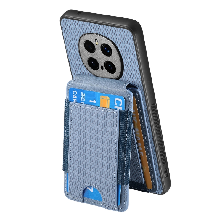 Funda de Teléfono Honor Magic7 Pro con Tapa Vertical Tipo Billetera de Fibra de Carbono (Azul)