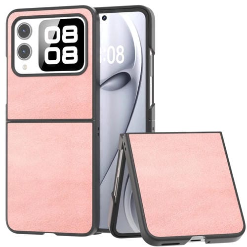 • 1x Funda de Teléfono Huawei Nova Flip con Textura Piel Becerro Dos Colores y Marco Negro (Oro Rosa)