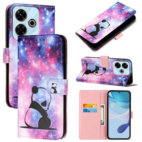 Funda de Teléfono de Cuero con Patrón de Dibujo de Colores de Tejido Liso para Xiaomi Redmi 13 4G (Baby Panda)