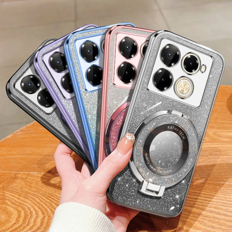 Funda de Teléfono TPU con Soporte Redondo y Purpurina Degradada Chapada para Infinix Note 40 Pro 5G (Azul Sierra)