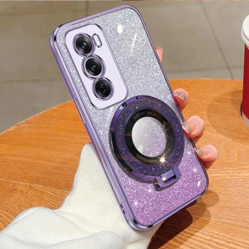 Funda de Teléfono de TPU con Soporte Redondo y Purpurina Degradada para Oppo Reno12 Global (Morado)