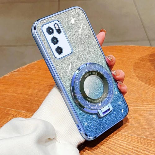 Funda de Teléfono de TPU con Soporte Redondo y Purpurina Degradada para Oppo Reno6 Pro 5G (Azul Sierra)