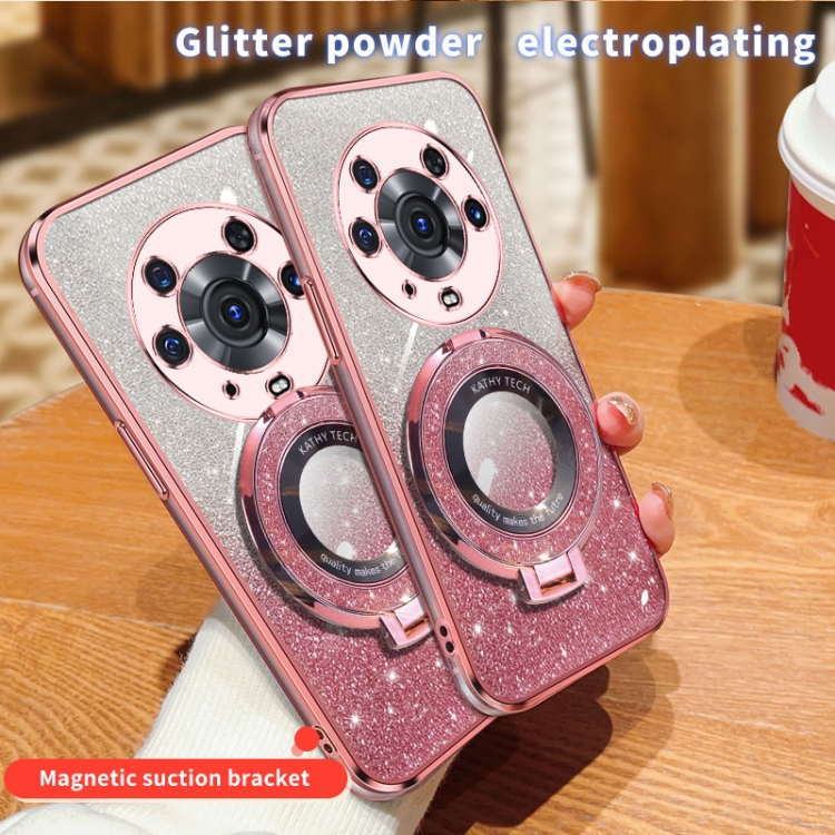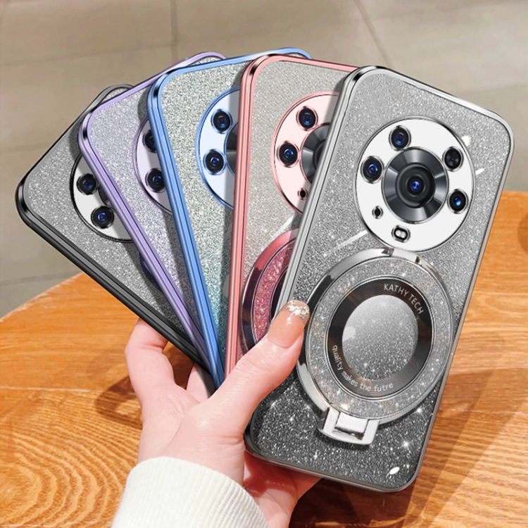 Funda de TPU para Honor Magic3 Pro con Soporte Redondo y Purpurina Degradada (Azul Sierra)