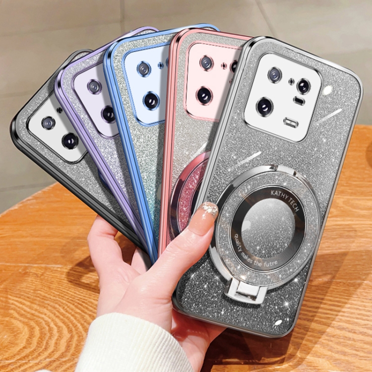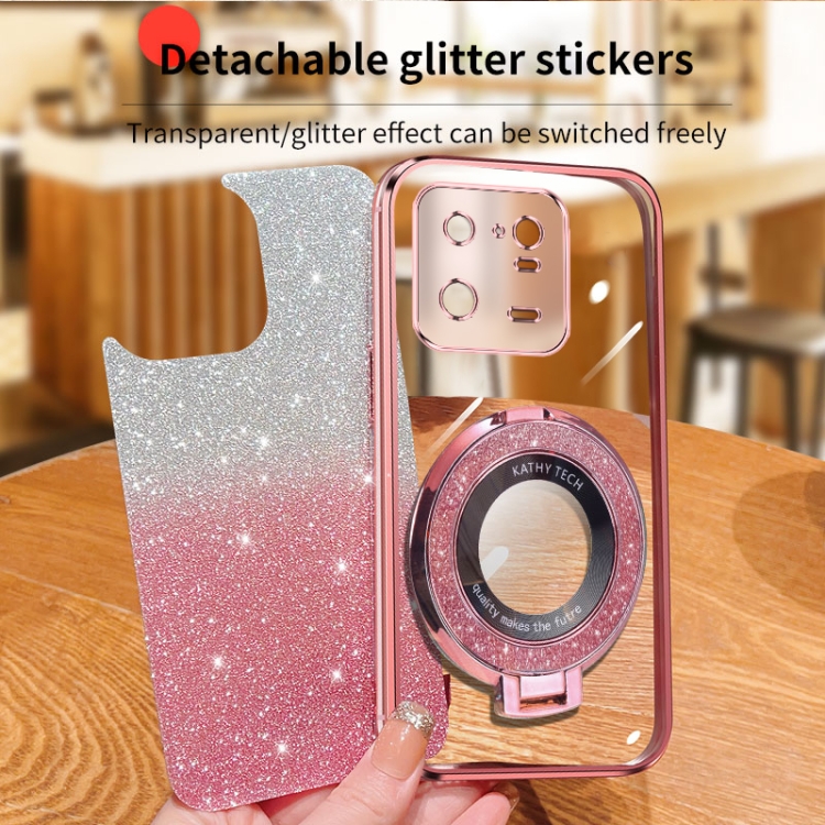 Funda de Teléfono de TPU con Soporte Redondo y Purpurina Degradada Plateada para Xiaomi 13 Pro (Azul Sierra)