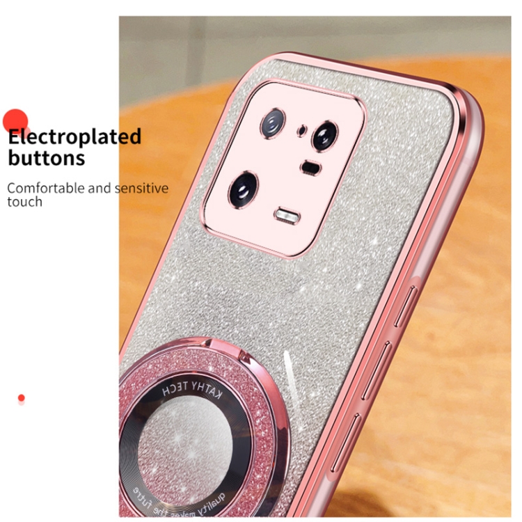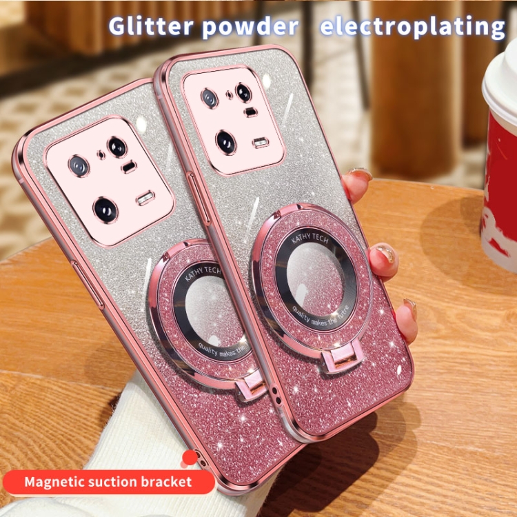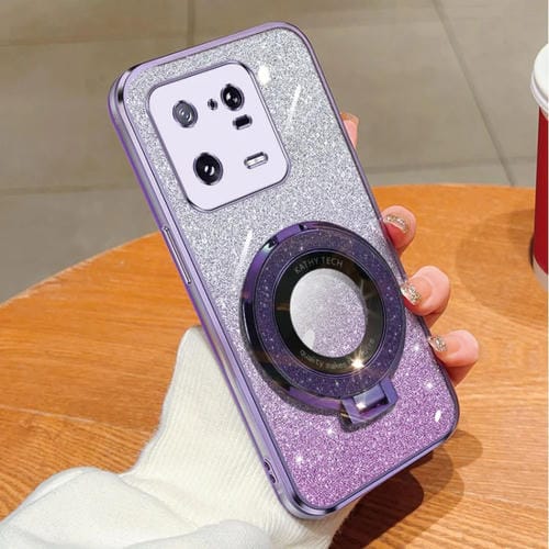 Funda de Teléfono de TPU con Soporte Redondo y Purpurina Degradada Plateada para Xiaomi 13 Pro (Morado)