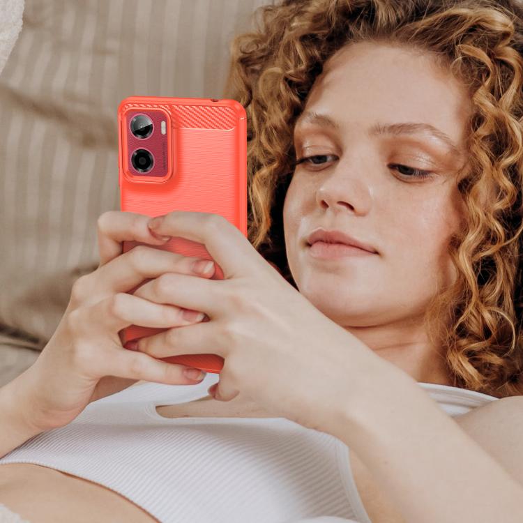 Funda de TPU para Motorola Moto E15 con Textura Cepillada de Fibra de Carbono (Rojo)