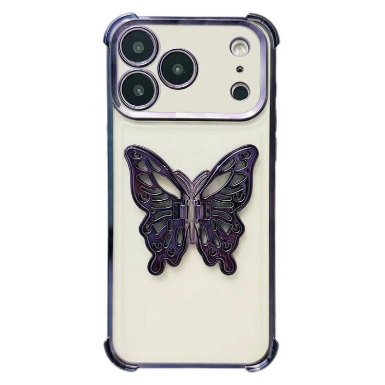Funda de TPU con diseño de mariposa 3D galvanizada para iPhone 17 Pro Max (morada)