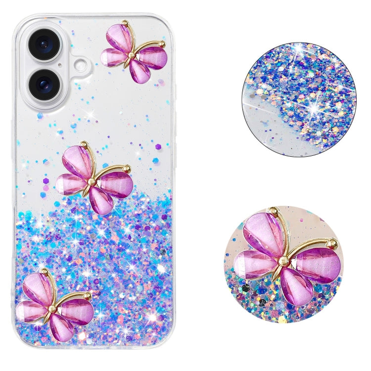 Funda TPU iPhone 16 Diseño Mariposa Purpurina Cielo Estrellado Luminoso (Morado)