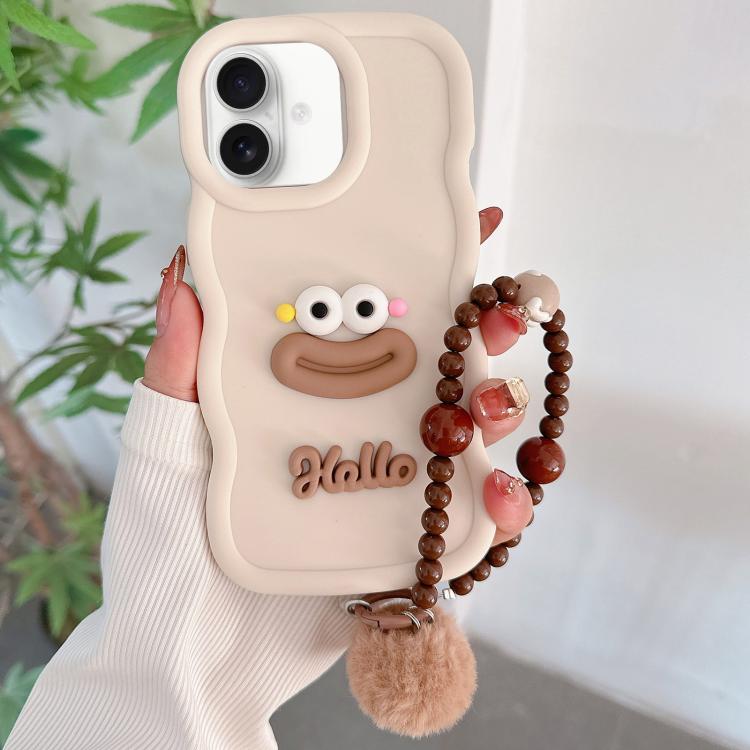 Funda TPU iPhone 16 Forma Boca de Salchicha Cadena de Cuentas (Blanca)