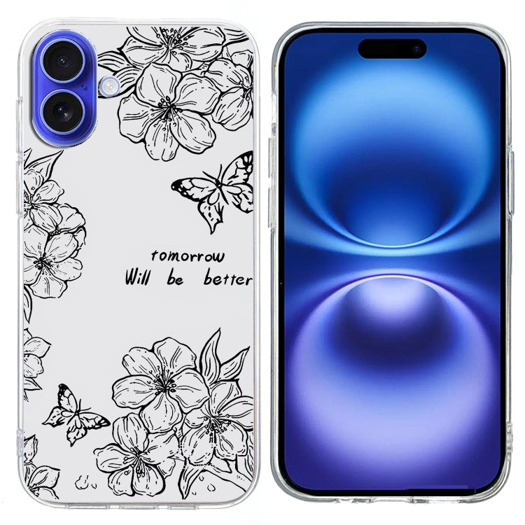 Funda TPU iPhone 16 Patrón Pintura Colorida Mariposa y Flor