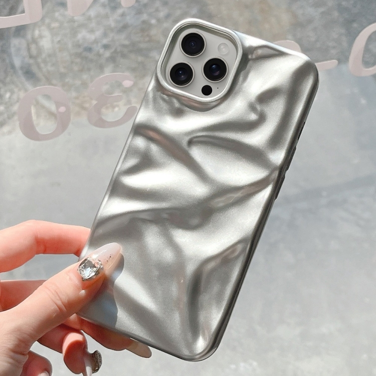 Funda TPU pintura galvanizada ondulación agua iPhone 16 Pro Max (Plateada)