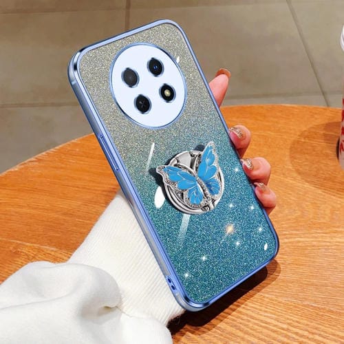 Funda TPU con Soporte Mariposa Purpurina Degradada para Huawei Enjoy 60X (Azul Sierra)