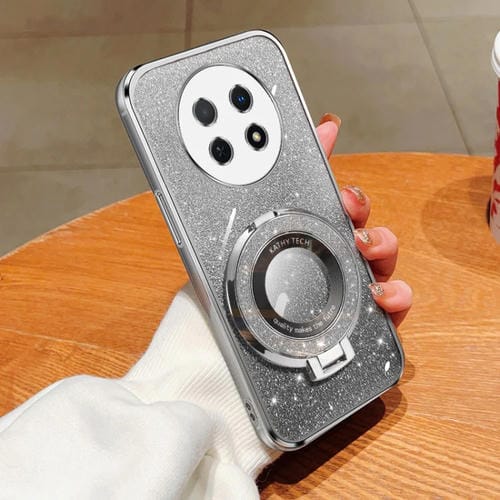 - 1x Funda TPU con Soporte redondo y purpurina degradada para Huawei Enjoy 60X (Plateada)