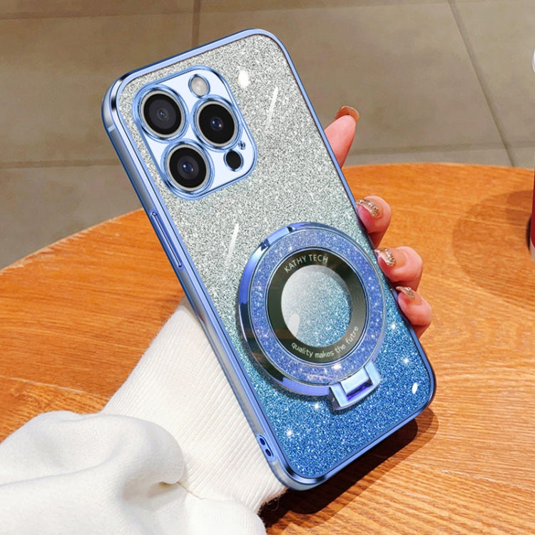 Funda TPU con Soporte Redondo y Purpurina Degradada para iPhone 16 Pro (Azul Sierra)