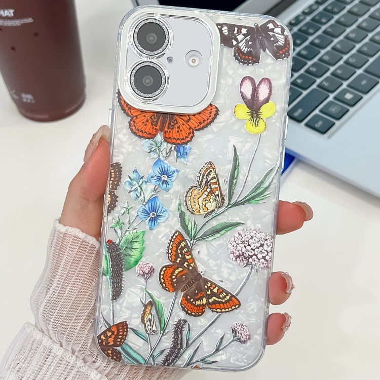 Funda TPU iPhone 16 Textura Plantas Flores Galvanizadas (Mariposa, Amor, Flores, Fl17)