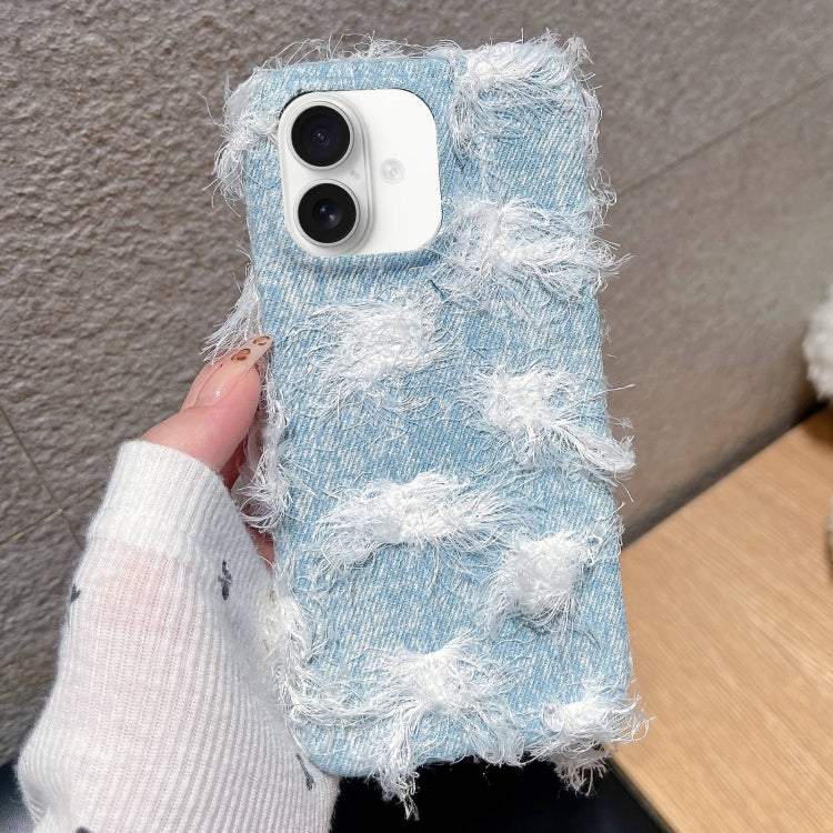 Funda TPU Felpa Tejido a Rayas iPhone 16 (Azul Claro)
