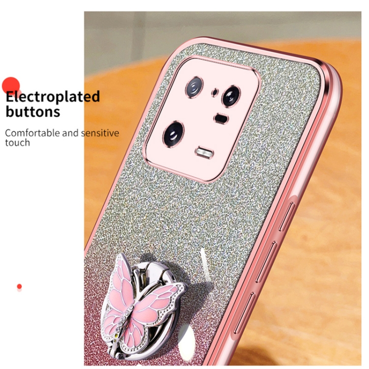 Funda de TPU para Teléfono con Soporte de Mariposa con Purpurina Degradada Plateada para Xiaomi 13 Pro (Plateada)
