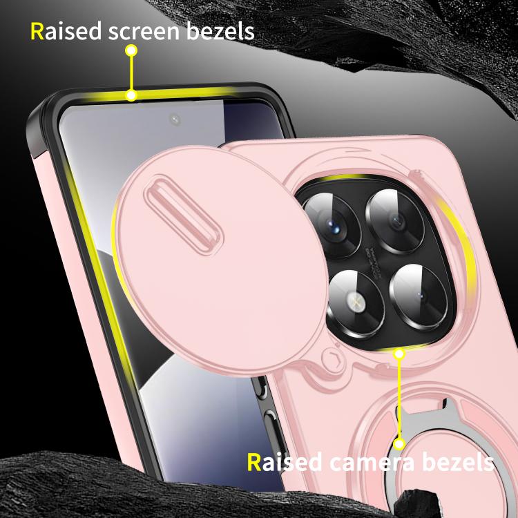Funda deslizante con anillo protector de cámara para Redmi Note 14 Pro 5G/4G (rosa)