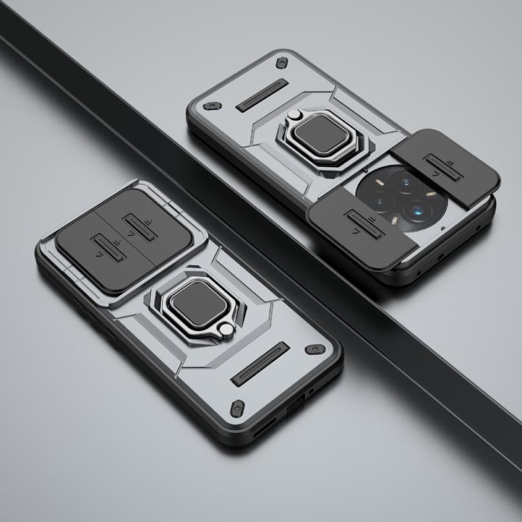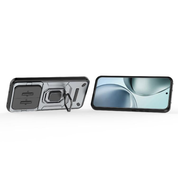 Funda Deslizante de TPU + PC a Prueba de Golpes con Soporte para Realme 14 Pro+ 5G (Gris)